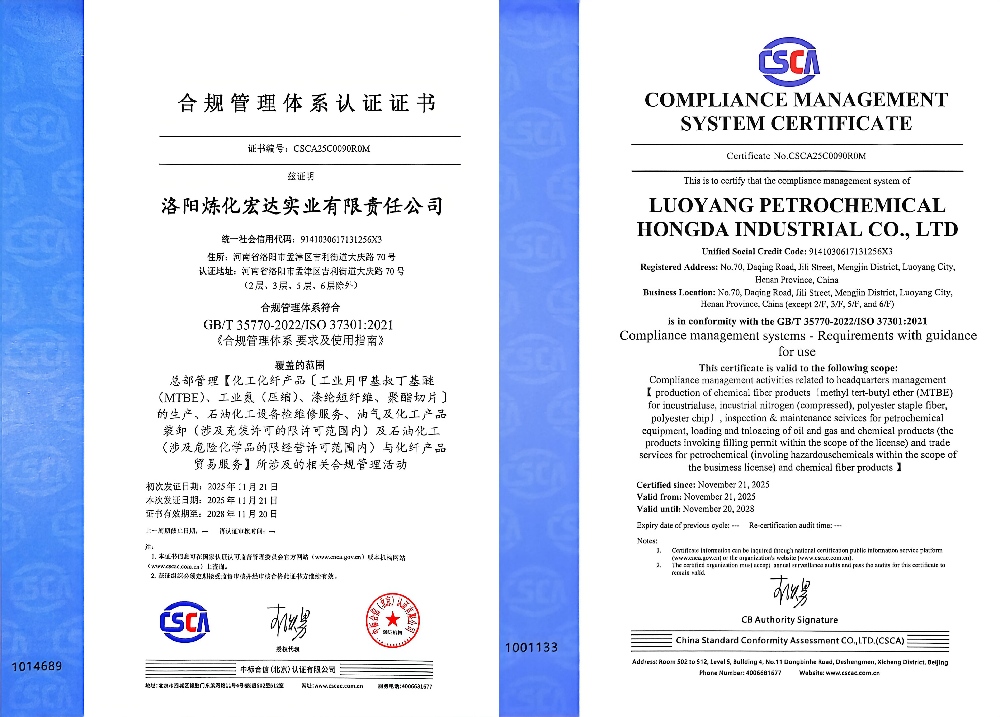 2025年11月21日,我公司獲得合規管理體系認證證書,在規范化管理進程中邁出了新的步伐。